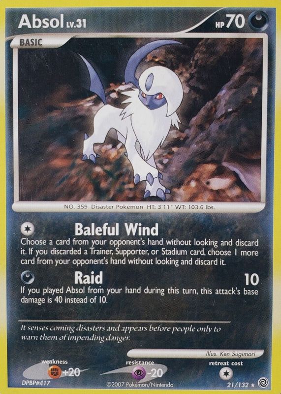 Absol 2007 Diamond & Pearl: Secret Wonders #021/132 Base RAW TCG (LIGHTLY PLAYED) Price Guide