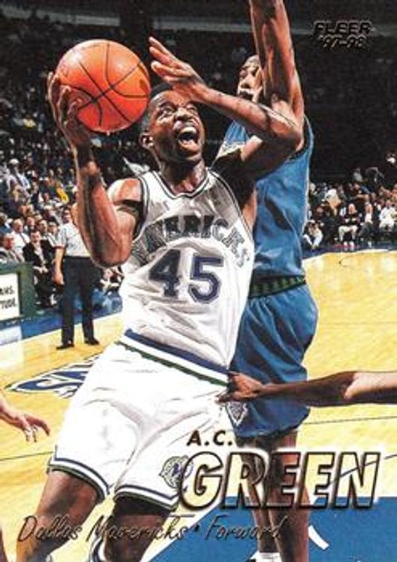 The AC Green 1997 Fleer #194 Base card is 1 of 3 AC Green's card variations in the 1997 Fleer set being tracked by Sports Card Investor, including Crystal, and Tiffany.
