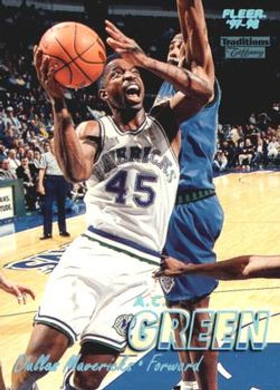 The AC Green 1997 Fleer #194 Tiffany card is 1 of 3 AC Green's card variations in the 1997 Fleer set being tracked by Sports Card Investor, including Base, and Crystal.
