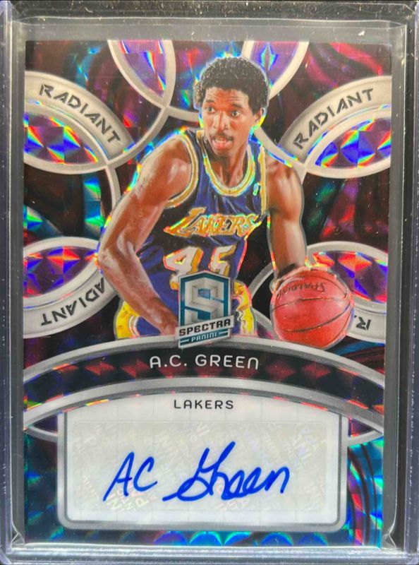The AC Green 2023 Spectra #RS-ACG Radiant Signatures - Interstellar /75 card is 1 of 10 AC Green's card variations in the 2023 Spectra set being tracked by Sports Card Investor, including Radiant Signatures /99, Radiant Signatures - Astral /49, Radiant Signatures - Meta /25, Radiant Signatures - Gold /10, and Radiant Signatures - International /10.