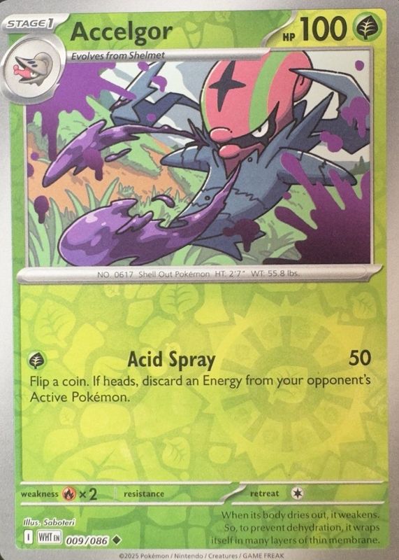 Accelgor 2025 Scarlet & Violet: White Flare #009/086 Reverse Holo RAW TCG (LIGHTLY PLAYED) Price Guide