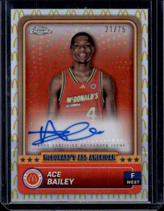 Ace Bailey 2024 Topps Chrome McDonald's All-American #84 Base Autographs - McDonald's Logo Refractor /75 RAW Price Guide