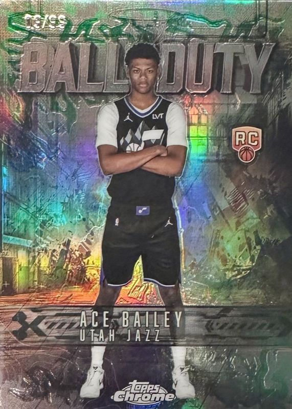 Best Prices Available For Sale of Ace Bailey 2025 Topps Chrome #BD-24 Ball of Duty - Green Refractor /99