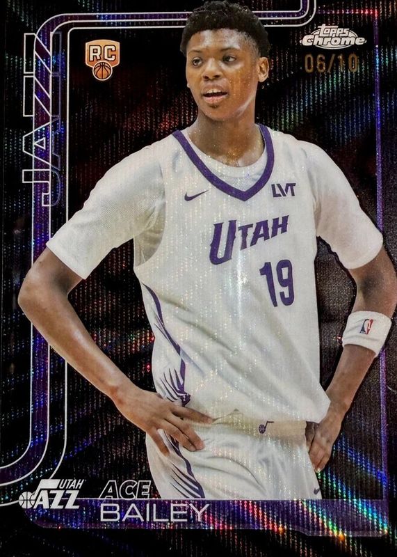 This card is 1 of 395 Ace Bailey's card variations in the 2025 Topps Chrome set being tracked by Sports Card Investor, including Base, Basketball Refractor, Box Set Refractor, Image Variation, and Lightboard Logo Refractor.