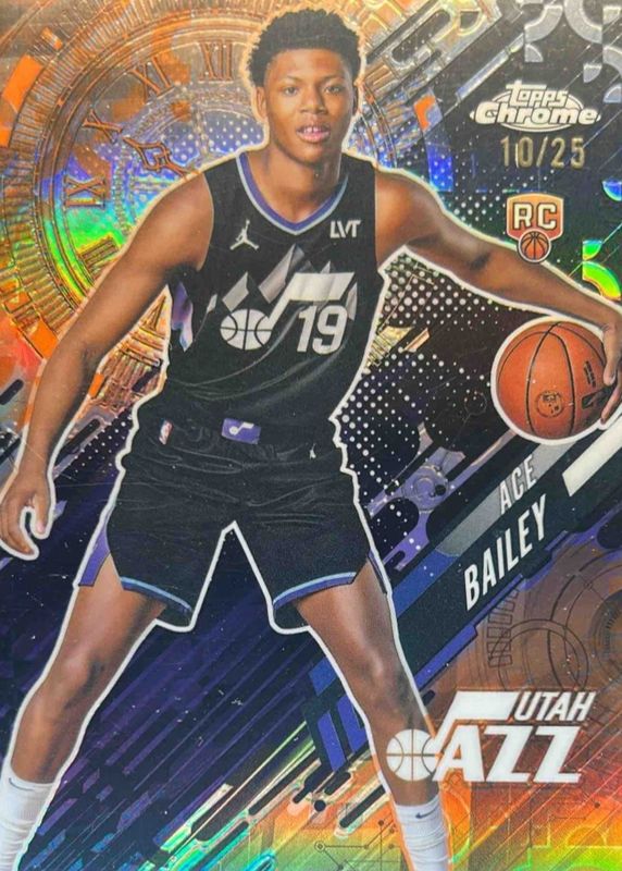 This card is 1 of 395 Ace Bailey's card variations in the 2025 Topps Chrome set being tracked by Sports Card Investor, including Base, 1st Day Issue Refractor, Basketball Refractor, Box Set Refractor, and Image Variation.