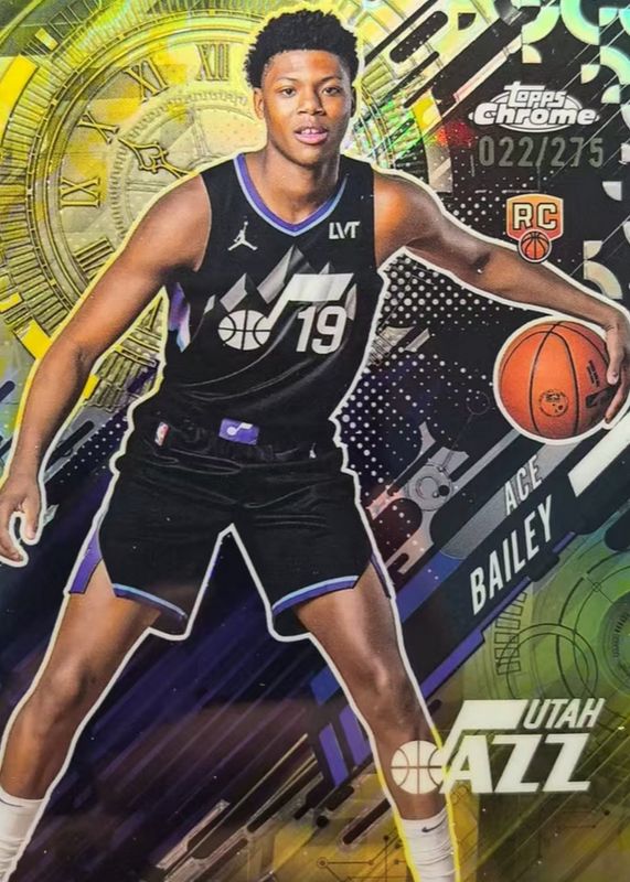 2025-26 Topps Chrome ACE BAILEY ROOKIE GO TIME YELLOW REFRACTOR /275 UTAH JAZZ