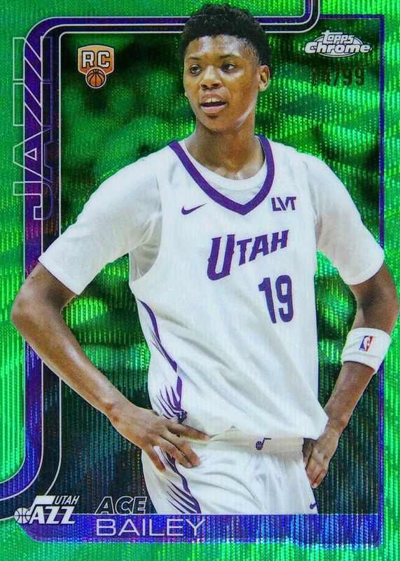Ace Bailey 2025-26 Topps Chrome Green Wave Refractor #/99 #255 Utah Jazz Rookie