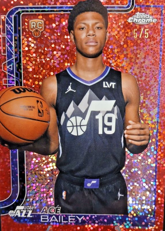 This card is 1 of 395 Ace Bailey's card variations in the 2025 Topps Chrome set being tracked by Sports Card Investor, including Base, Basketball Refractor, Box Set Refractor, Image Variation, and Lightboard Logo Refractor.