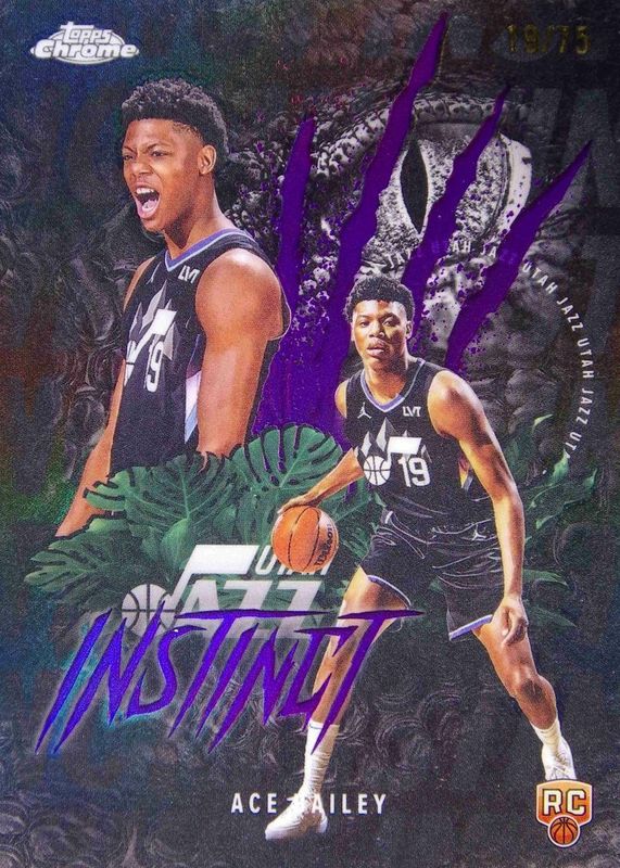 The Ace Bailey 2025 Topps Chrome #INS-15 Instinct - Purple Refractor /75 Rookie card in Raw condition has moved down -$49.00 (-65.3%) in the last 30 days and was last sold for $26.00 .