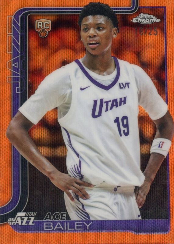 This card is 1 of 395 Ace Bailey's card variations in the 2025 Topps Chrome set being tracked by Sports Card Investor, including Base, Basketball Refractor, Box Set Refractor, Image Variation, and Lightboard Logo Refractor.