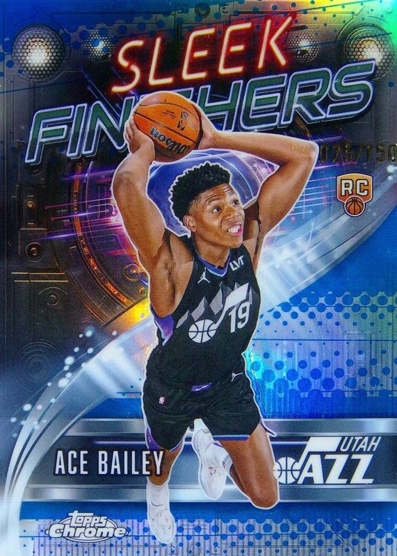The Ace Bailey 2025 Topps Chrome #SF-25 Sleek Finishers - Blue Refractor /150 Rookie card in Raw condition has not changed in price in the last 30 days and was last sold for $17.00 .