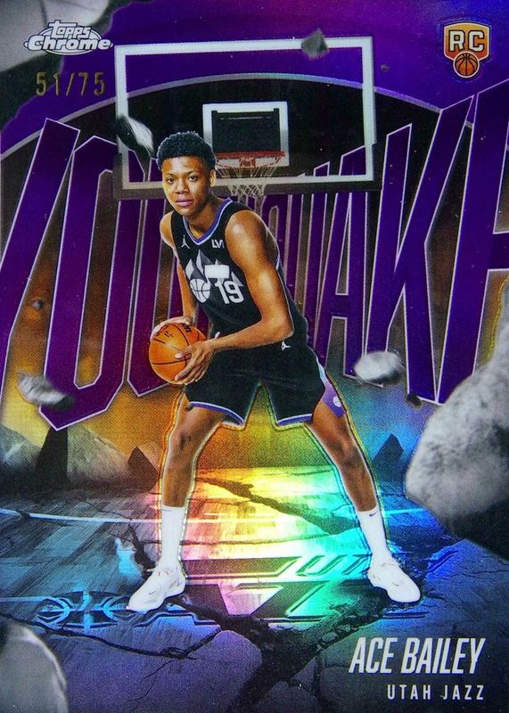 The Ace Bailey 2025 Topps Chrome #YQ-5 Youthquake - Purple Refractor /75 Rookie card in Raw condition has not changed in price in the last 30 days and was last sold for $32.00 .