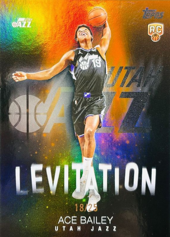 The Ace Bailey 2025 Topps #L-20 Levitation - Orange Rainbow /25 Rookie card in Raw condition has moved up $1.23 (+3.0%) in the last 30 days and was last sold for $42.23 .