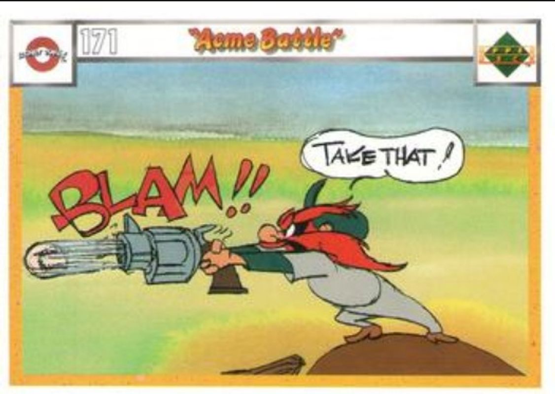 The Acme Battle 1990 Upper Deck Comic Ball #171-/-174 Base card is 1 of 18 Acme Battle's card variations in the 1990 Upper Deck Comic Ball set being tracked by Sports Card Investor, including #163-/-178 Base, #164-/-179 Base, #165-/-180 Base, #166-/-175 Base, and #167-/-176 Base.