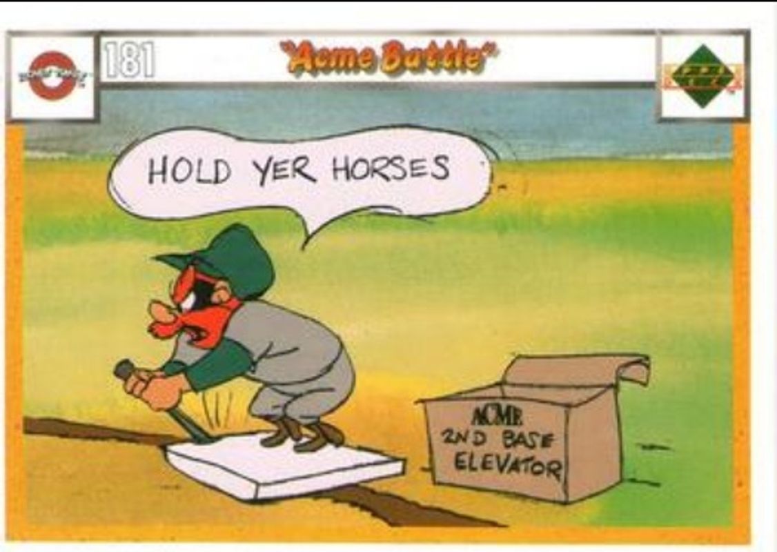 The Acme Battle 1990 Upper Deck Comic Ball #181-/-196 Base card is 1 of 18 Acme Battle's card variations in the 1990 Upper Deck Comic Ball set being tracked by Sports Card Investor, including #163-/-178 Base, #164-/-179 Base, #165-/-180 Base, #166-/-175 Base, and #167-/-176 Base.