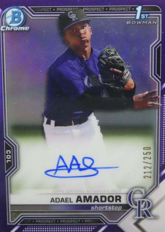 2021 Bowman Chrome Adael Amador Auto 1st Pros. Purple Refractor /250 Rockies
