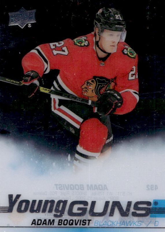 2019-20 Upper Deck Adam Boqvist Clear Cut Young Guns Rookie RC #492 Blackhawks