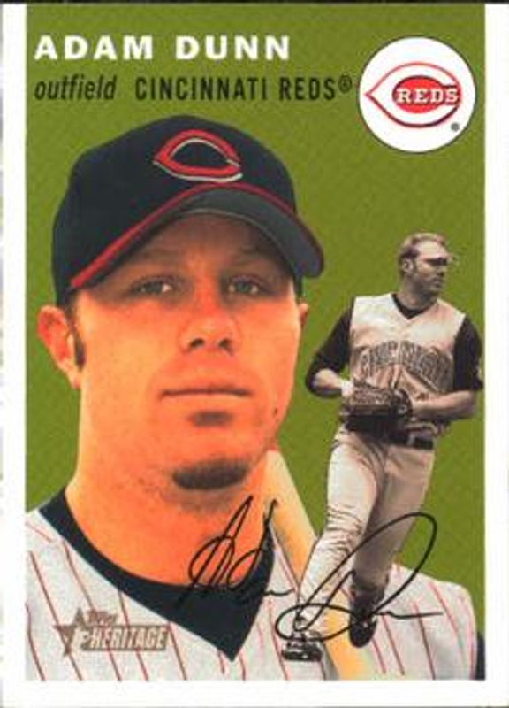 The Adam Dunn 2003 Topps Heritage #325a Base card is 1 of 5 Adam Dunn's card variations in the 2003 Topps Heritage set being tracked by Sports Card Investor, including Base, Clubhouse Collection Relics, Chrome /1954, and Chrome Refractor /554.