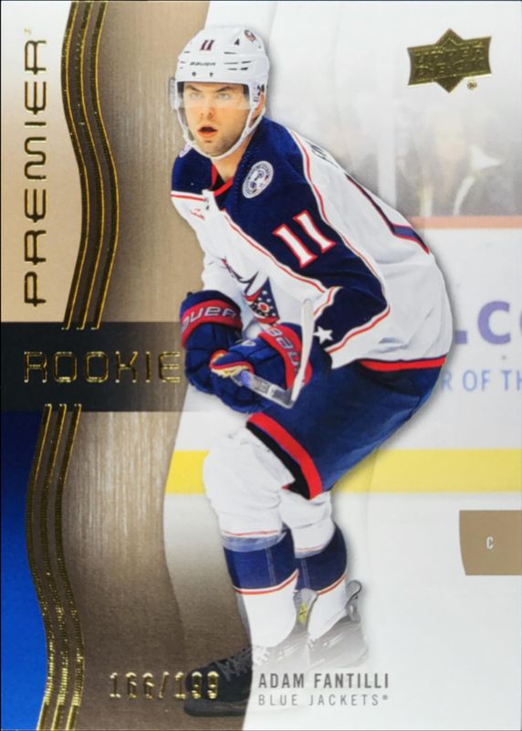 The Adam Fantilli 2023 Upper Deck Premier #134 Bronze /199 Rookie card is 1 of 42 Adam Fantilli's card variations in the 2023 Upper Deck Premier set being tracked by Sports Card Investor, including Base /399, Gold /65, Ruby /49, Rose Gold /25, and Fight Strap /15.