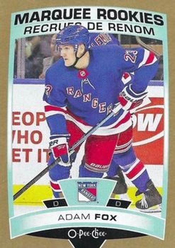 The Adam Fox 2019 Upper Deck #622 2019 O-Pee-Chee Update - Gold Rookie card is 1 of 35 Adam Fox's card variations in the 2019 Upper Deck set being tracked by Sports Card Investor, including Young Guns Base, Young Guns Canvas, Young Guns - Clear Cut, Young Guns - Clear Cut Exclusives, and Young Guns - Silver Foil.