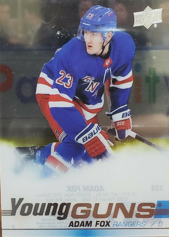 Best Prices Available For Sale of Adam Fox 2019 Upper Deck #228 Young Guns - Clear Cut