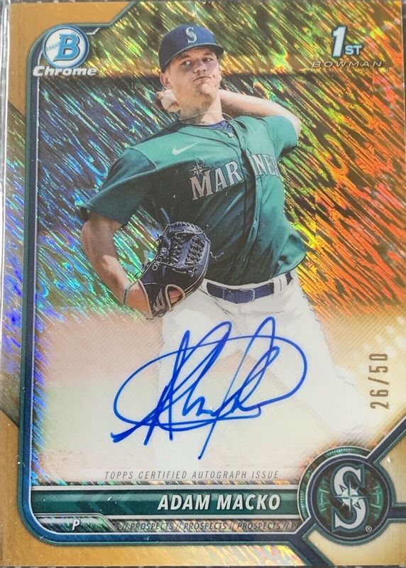 2022 Bowman Chrome Prospect Auto Gold Shimmer REFRACTOR Adam Macko 1ST AUTO /50