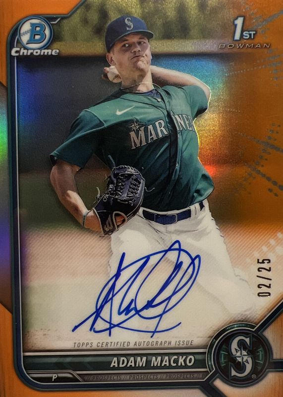 Best Prices Available For Sale of Adam Macko 2022 Bowman #CPA-AM Chrome Prospect Auto - Orange Refractor /25 (1st)