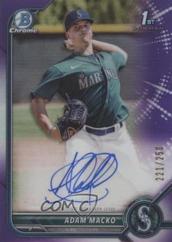 2022 Bowman Chrome Adam Macko 1st Purple Refractor Auto /250 Mariners