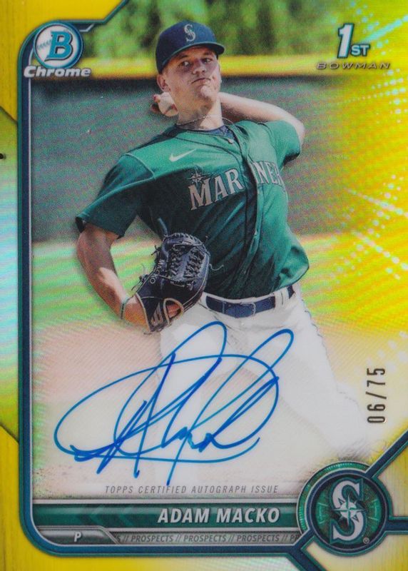 2022 Bowman Chrome Adam Macko Yellow Refractor 1st Prospect Auto #22/75 Mariners