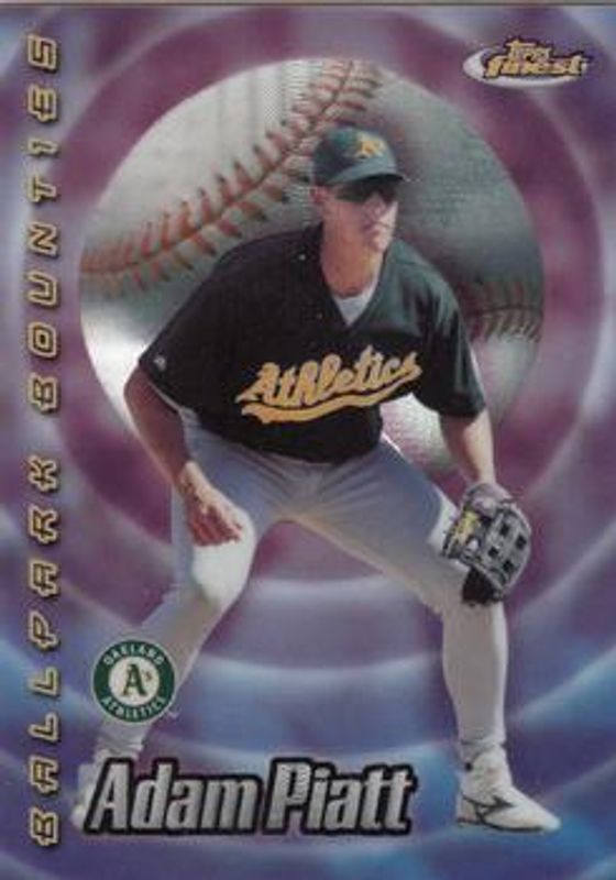 The Adam Piatt 2000 Topps Finest #BB13 Ballpark Bounties card is 1 of 4 Adam Piatt's card variations in the 2000 Topps Finest set being tracked by Sports Card Investor, including Base, Gold Refractor /100, and Refractor /1000.