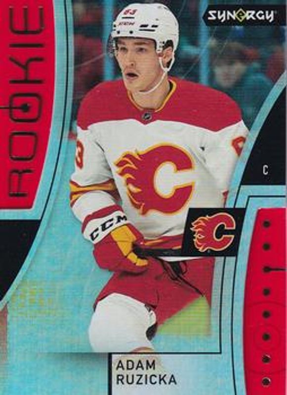 The Adam Ruzicka 2021 Upper Deck Synergy #131 Red Codes Rookie card is 1 of 3 Adam Ruzicka's card variations in the 2021 Upper Deck Synergy set being tracked by Sports Card Investor, including Base /22, and Red.