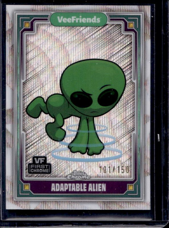 The Adaptable Alien 2025 Topps Chrome VeeFriends #6 Wave Refractor /150 card is 1 of 21 Adaptable Alien's card variations in the 2025 Topps Chrome VeeFriends set being tracked by Sports Card Investor, including Base, Refractor, Yellow Refractor, Shimmer Refractor /250, and RayWave Refractor /199.
