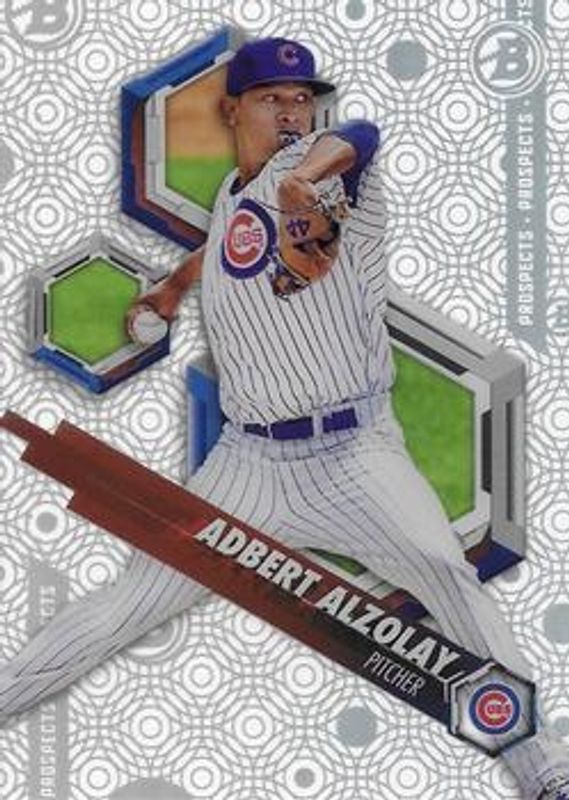 The Adbert Alzolay 2018 Bowman High Tek #PHT-AA Base card is 1 of 23 Adbert Alzolay's card variations in the 2018 Bowman High Tek set being tracked by Sports Card Investor, including Purple Rainbow /191, Green Rainbow /99, Ocean Blue Tidal /75, Gold Rainbow /50, and Orange Magma Diffractor /25.