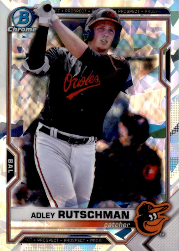 This card is 1 of 21 Adley Rutschman's card variations in the 2021 Bowman set being tracked by Sports Card Investor, including Chrome Prospects - Refractor /499, Chrome Prospects - Speckle Refractor /299, Chrome Prospects - Purple /250, Chrome Prospects - Fuchsia Refractor /199, and Chrome Prospects - Fuchsia Shimmer Refractor /199.