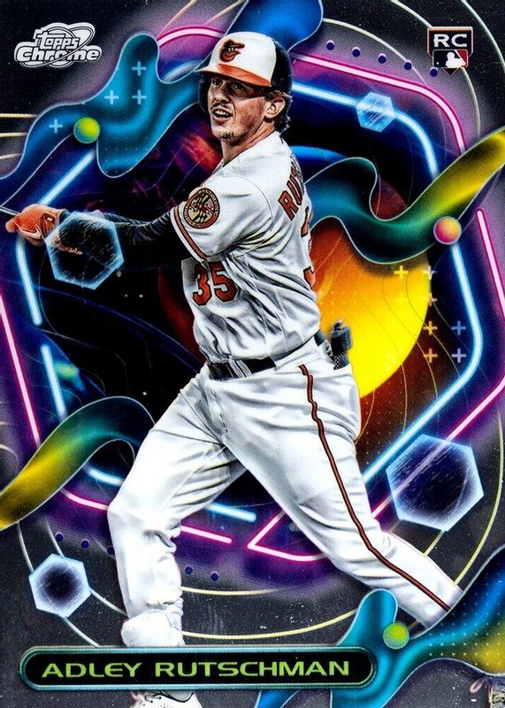 The Adley Rutschman 2023 Topps Chrome Cosmic #35 Base Rookie card in Raw condition has moved up $2.01 (+203%) in the last 30 days and was last sold for $3.00 .