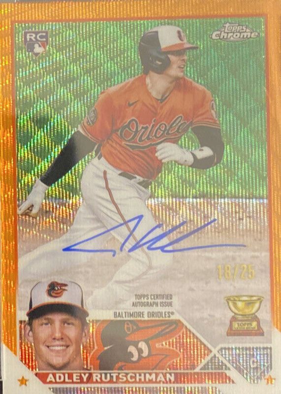 Best Prices Available For Sale of Adley Rutschman 2023 Topps Chrome #RA-AR Rookie Autographs - Orange Wave Refractor /25