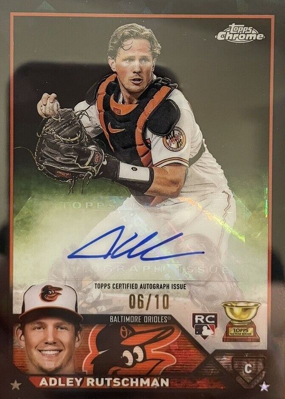 This card is 1 of 14 Adley Rutschman's card variations in the 2023 Topps Chrome Update Sapphire Edition set being tracked by Sports Card Investor, including Rookie Debut, Rookie Debut - Gold /50, Rookie Debut - Orange /25, Rookie Debut - Black /10, and Rookie Debut - Red /5.