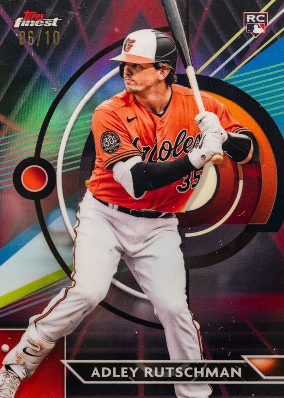 The Adley Rutschman 2023 Topps Finest #22 Red/Black Vapor Refractor /10 Rookie card in Raw condition has not changed in price in the last 30 days and was last sold for $202.50 .