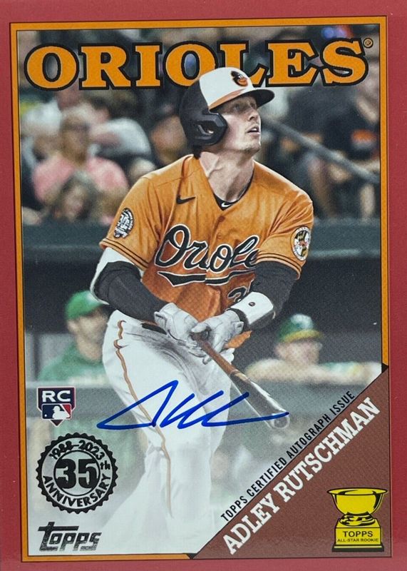 2023 Topps Update Adley Rutschman RC Red Parallel Auto #25/25 1988 Topps Orioles