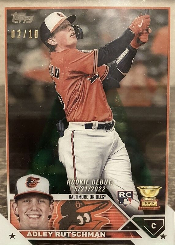 This card is 1 of 37 Adley Rutschman's card variations in the 2023 Topps Update set being tracked by Sports Card Investor, including Rookie Debut, Rookie Debut - Ghost Foil, Rookie Debut - Gold Foil, Rookie Debut - Jack O' Lantern Foil, and Rookie Debut - Orange & Black Foil.