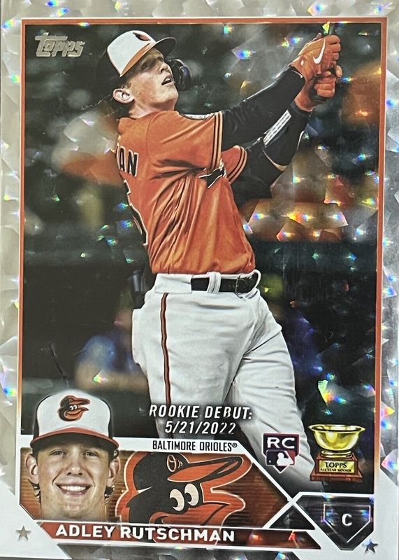 The Adley Rutschman 2023 Topps Update #US180 Rookie Debut - Silver Patterned Foil card in Raw condition has not changed in price in the last 30 days and was last sold for $3.00 .