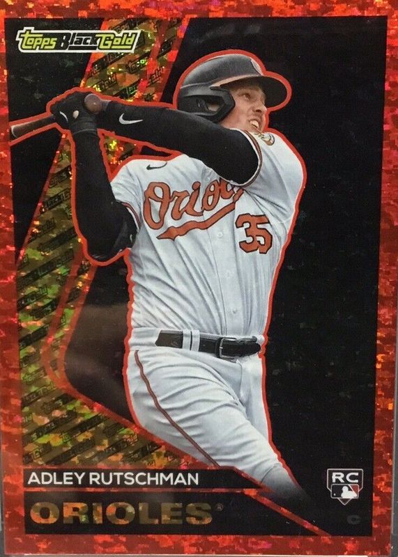 The Adley Rutschman 2023 Topps Update #BG-1 Topps Black Gold - Red /10 Rookie card in Raw condition has not changed in price in the last 30 days and was last sold for $225.00 .