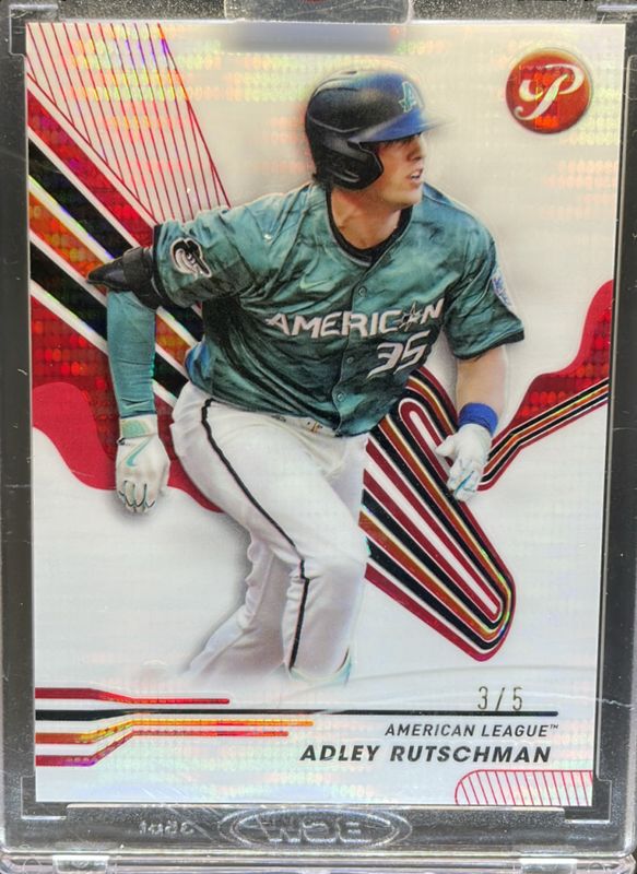 The Adley Rutschman 2024 Topps Pristine #298 Pristine Red Refractor /5 card is 1 of 54 Adley Rutschman's card variations in the 2024 Topps Pristine set being tracked by Sports Card Investor, including #298 Base, #21 Base, #298 Pristine Refractor, #21 Pristine Refractor, and #298 Refractor.