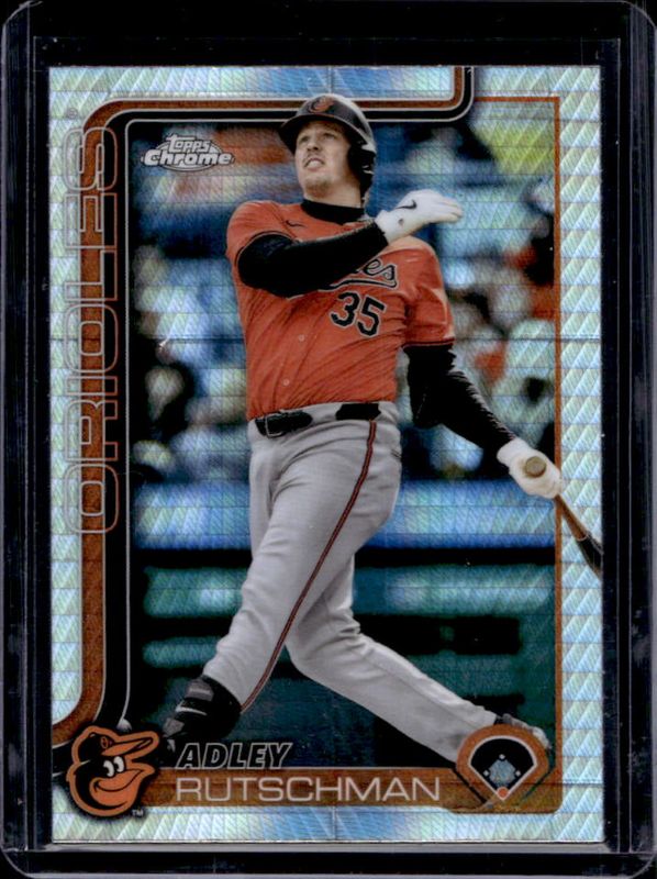 The Adley Rutschman 2025 Topps Chrome #271 Prism Refractor card is 1 of 99 Adley Rutschman's card variations in the 2025 Topps Chrome set being tracked by Sports Card Investor, including Base, Geometric Refractor, Image Variation, Lightboard Logo Variation, and Negative Refractor.