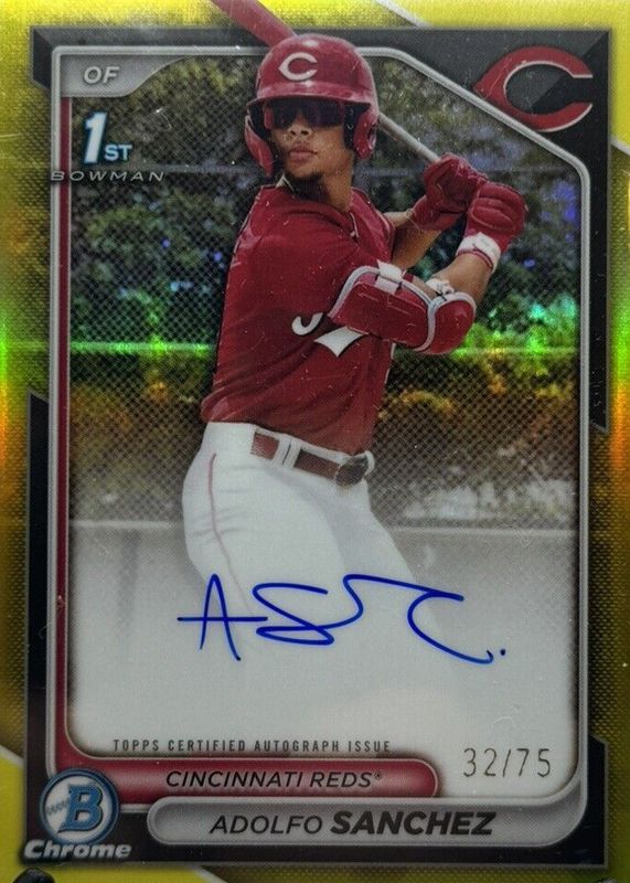2024 Bowman Chrome Adolfo Sanchez Auto Yellow Refractor 1st #2/75 Reds