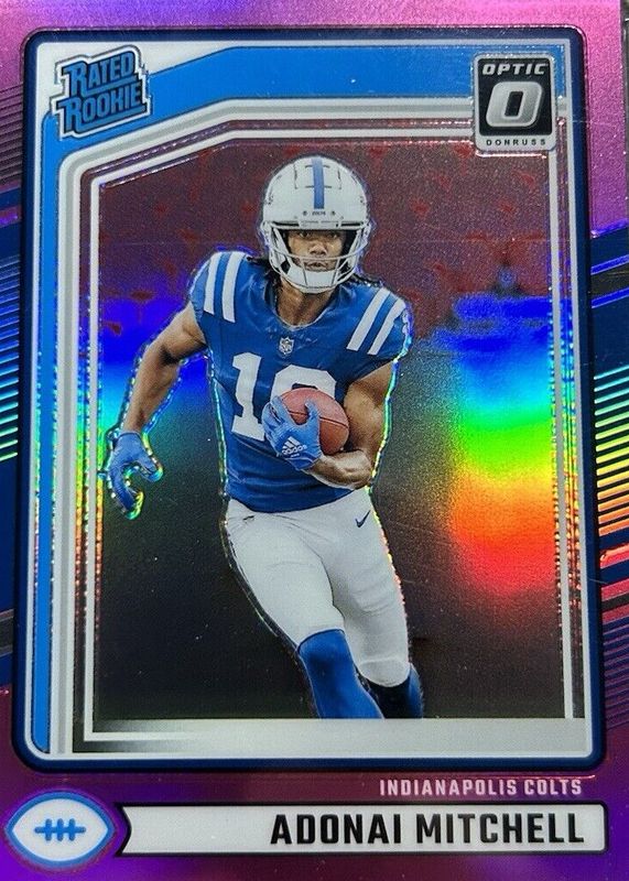 The Adonai Mitchell 2024 Donruss #343 Optic Preview - Pink Rookie card in Raw condition has moved up $0.61 (+61.6%) in the last 30 days and was last sold for $1.60 .