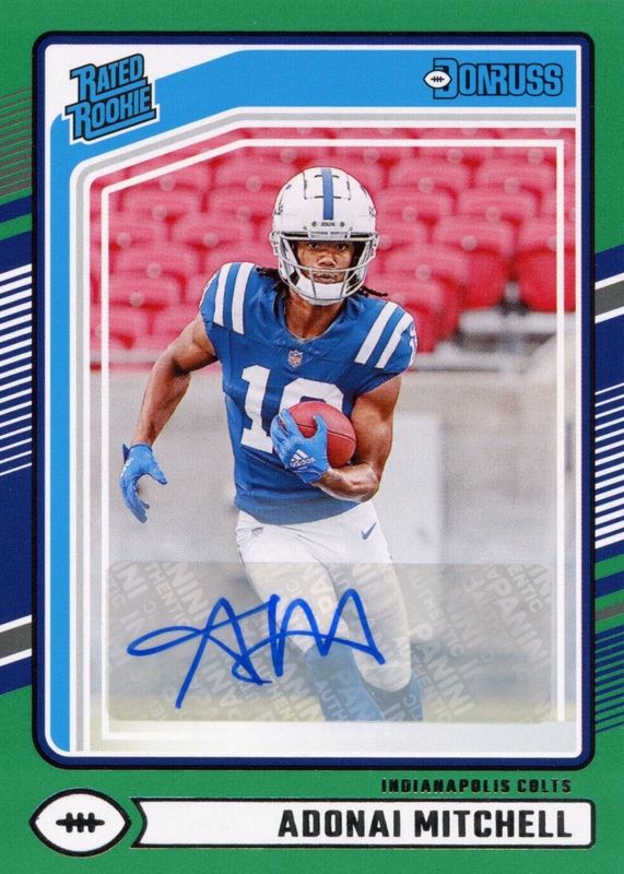 2024 Donruss Rated Rookies Auto Green Press Proof Adonai Mitchell Rookie Auto