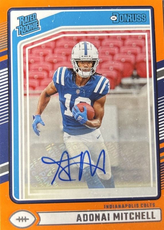 🔥2024 Panini Donruss ADONAI MITCHELL Rated Rookie Orange RC Auto #343 - Colts