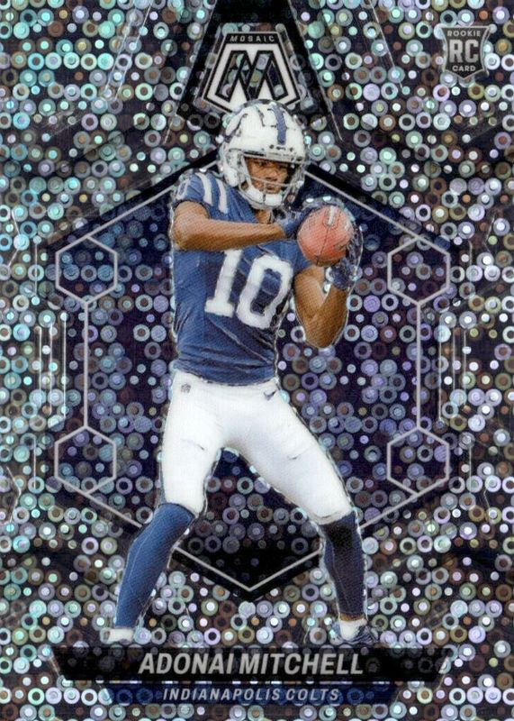 This card is 1 of 78 Adonai Mitchell's card variations in the 2024 Mosaic set being tracked by Sports Card Investor, including Base, Green, Mosaic, Pink Camo, and Reactive Blue.