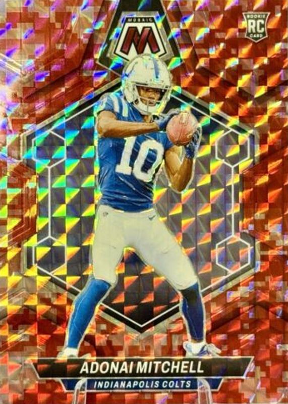 This card is 1 of 78 Adonai Mitchell's card variations in the 2024 Mosaic set being tracked by Sports Card Investor, including Base, Green, Mosaic, No Huddle, and Reactive Blue.